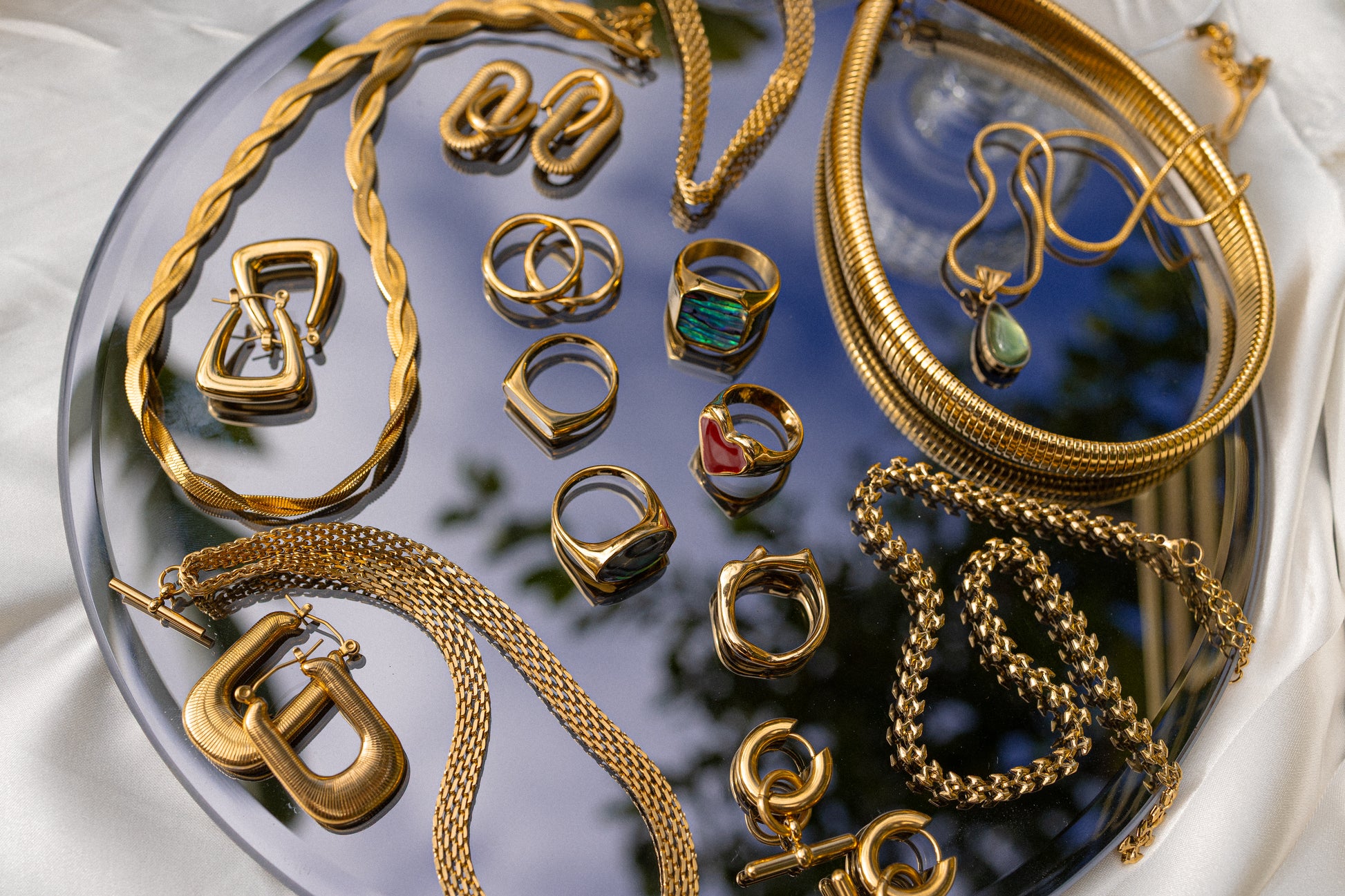 Our beautiful pieces are all plated with 18k gold, complete with a high polish finish. This creates a flawless and lasting shine. Customers can trust in the durability and beauty of our jewellery, thanks to the high-quality materials and expert craftsmanship.